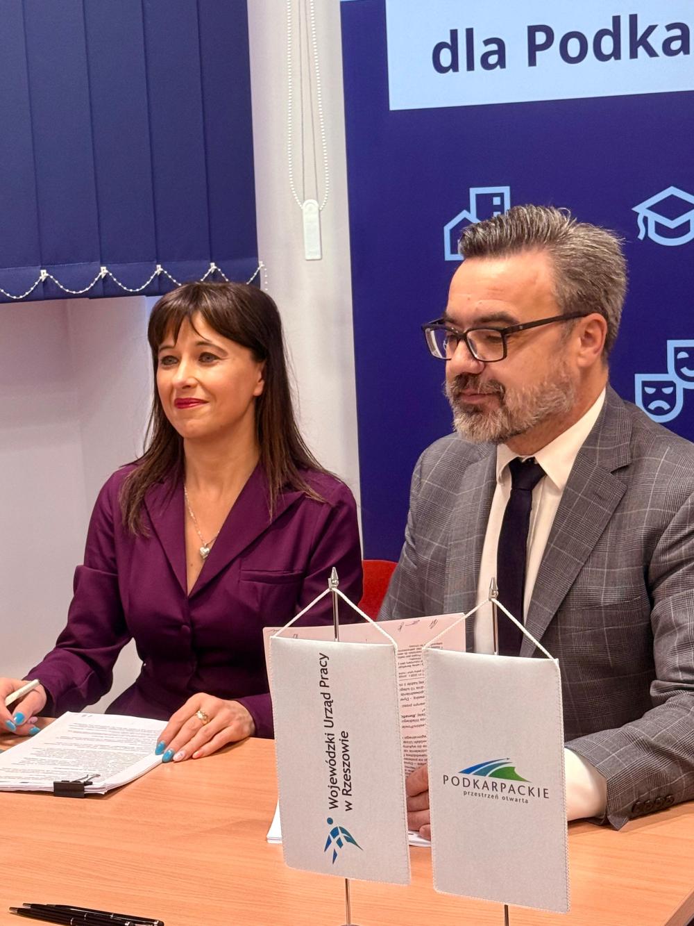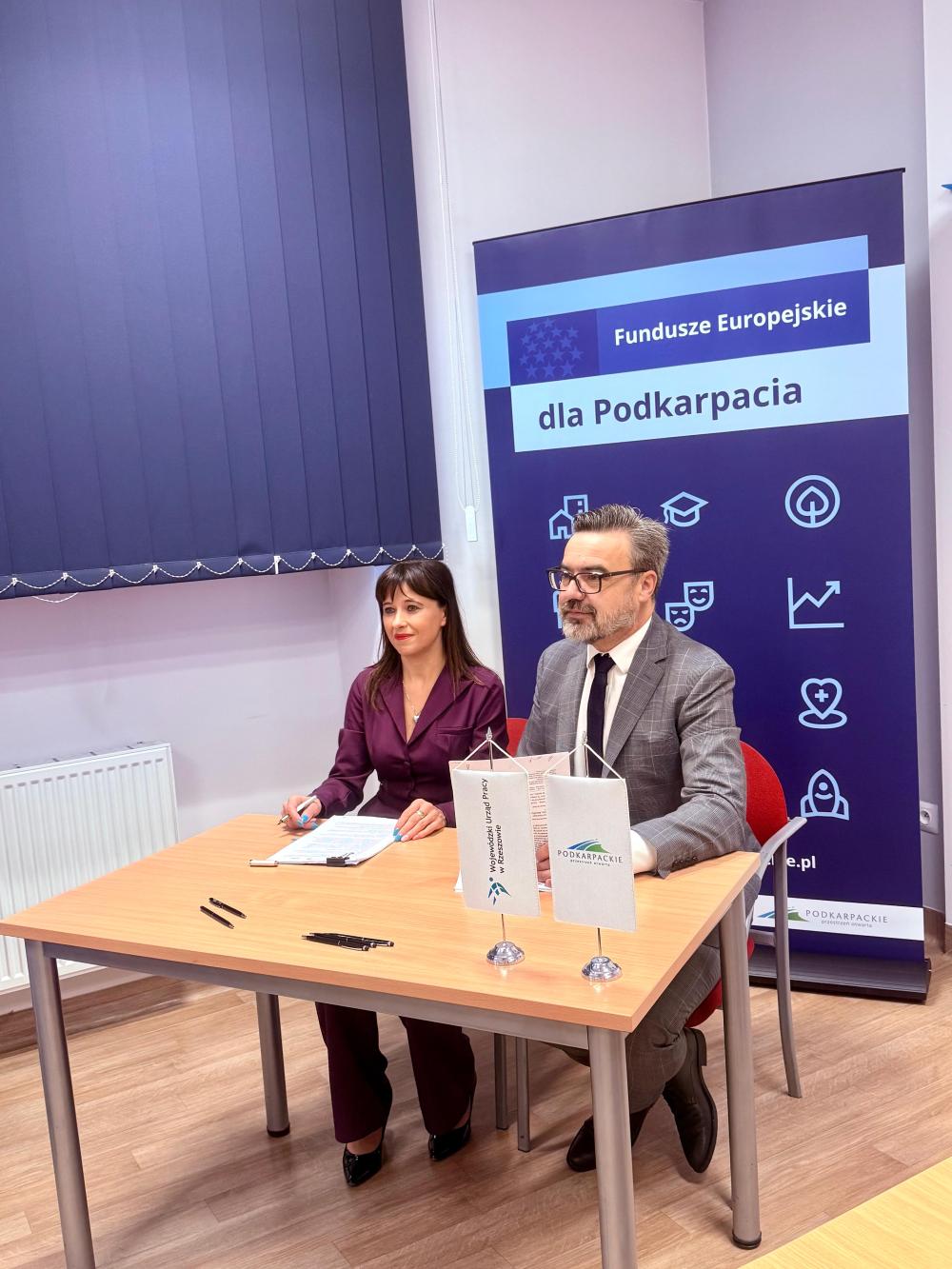 W dniu 30 marca 2026 r. podpisałam z Dyrektorem Wojewódzkiego Urzędu Pracy w Rzeszowie Panem Tomaszem Czopem umowę o dofinansowanie Projektu pn. „Aktywizacja osób bezrobotnych z powiatu jarosławskiego (III)” w ramach Działania 7.1 Aktywizacja zawodowa osób pozostających bez pracy w ramach programu regionalnego Fundusze Europejskie dla Podkarpacia 2021-2027. Całkowita wartość projektu dla powiatu jarosławskiego to kwota 7 236 725,49 zł, w tym 3 706 790,98 na 2026 rok.